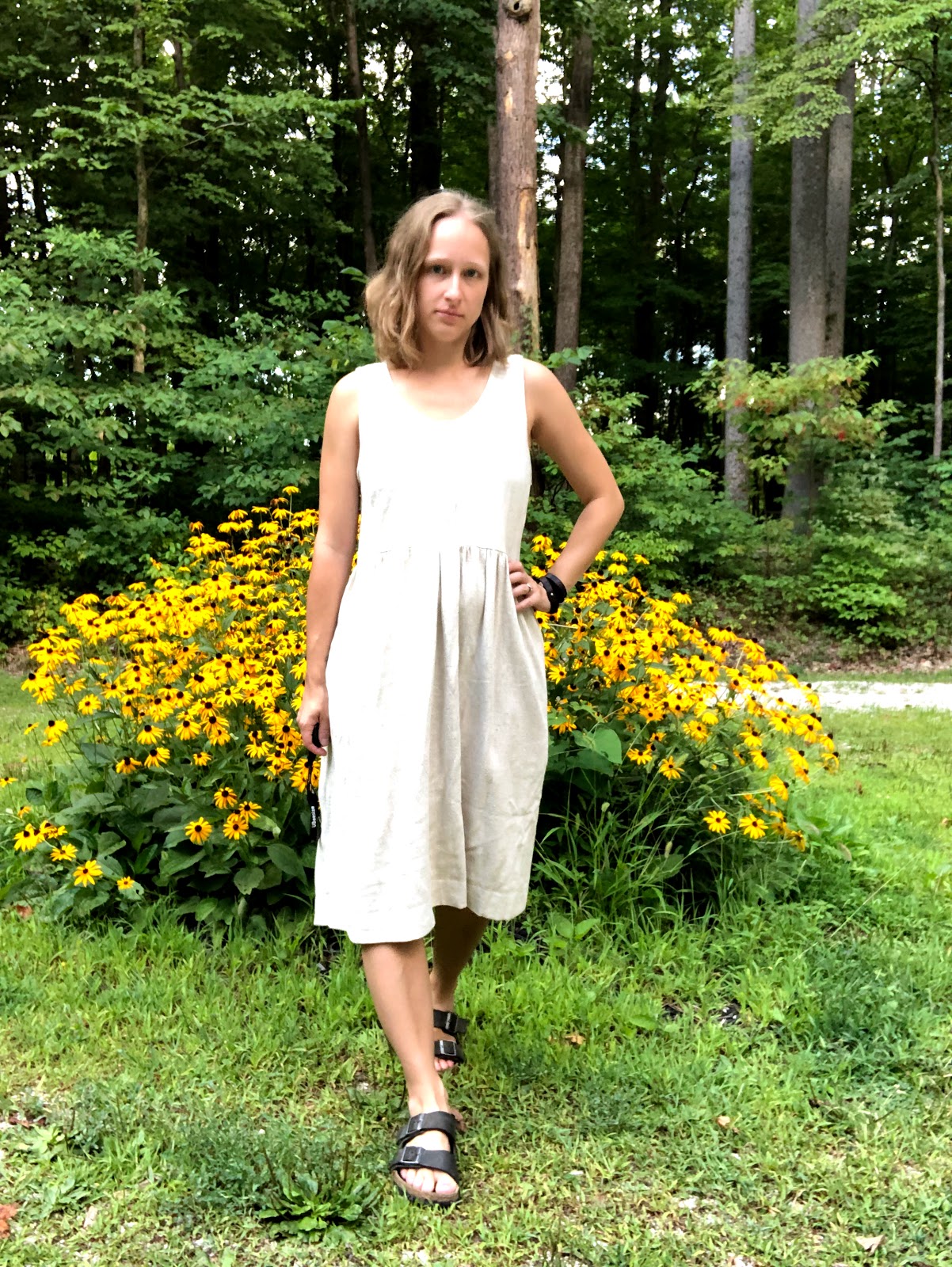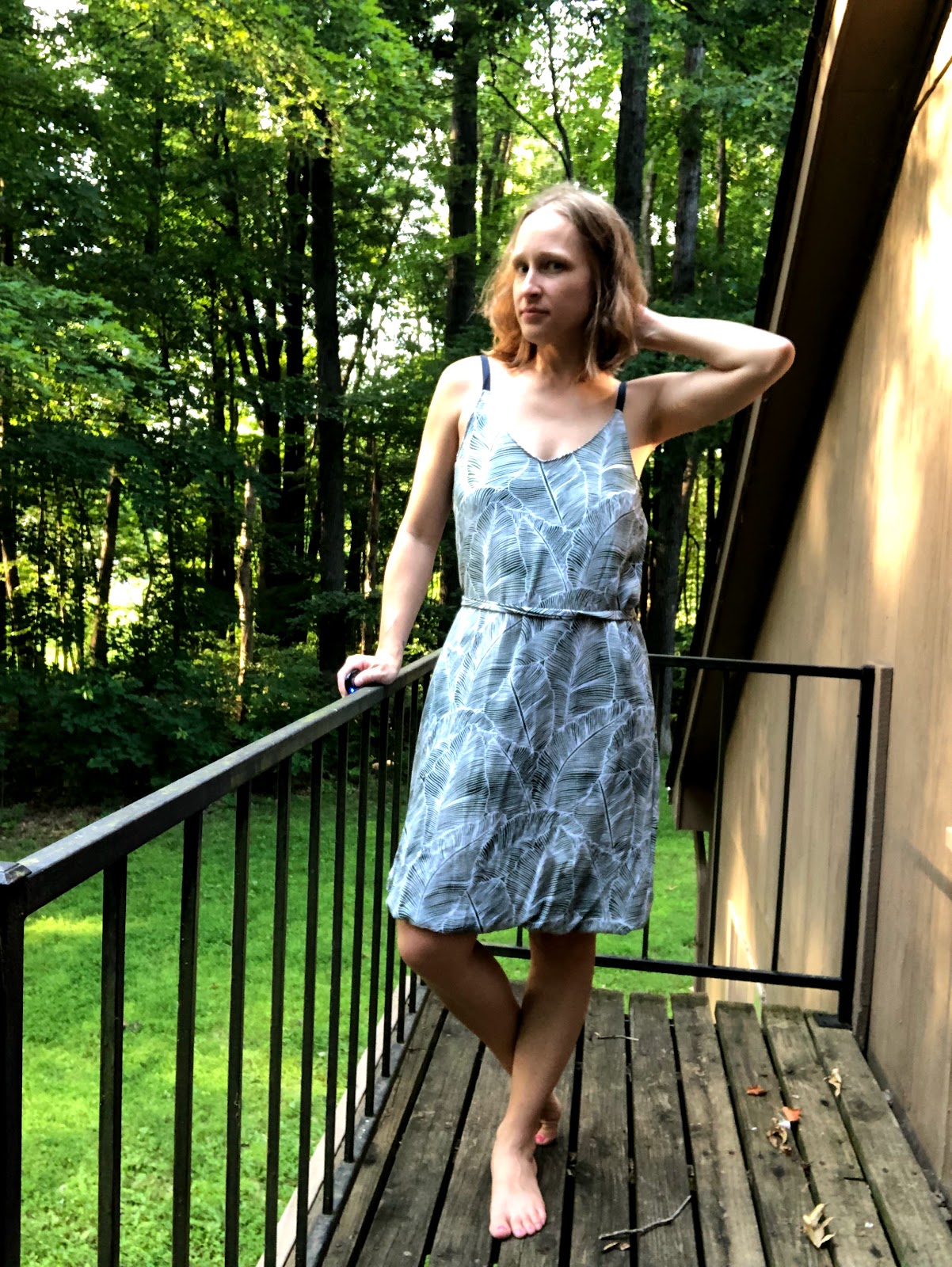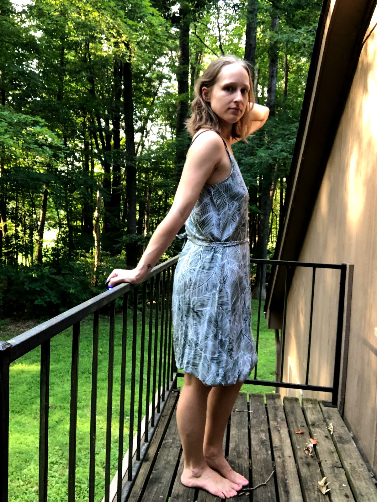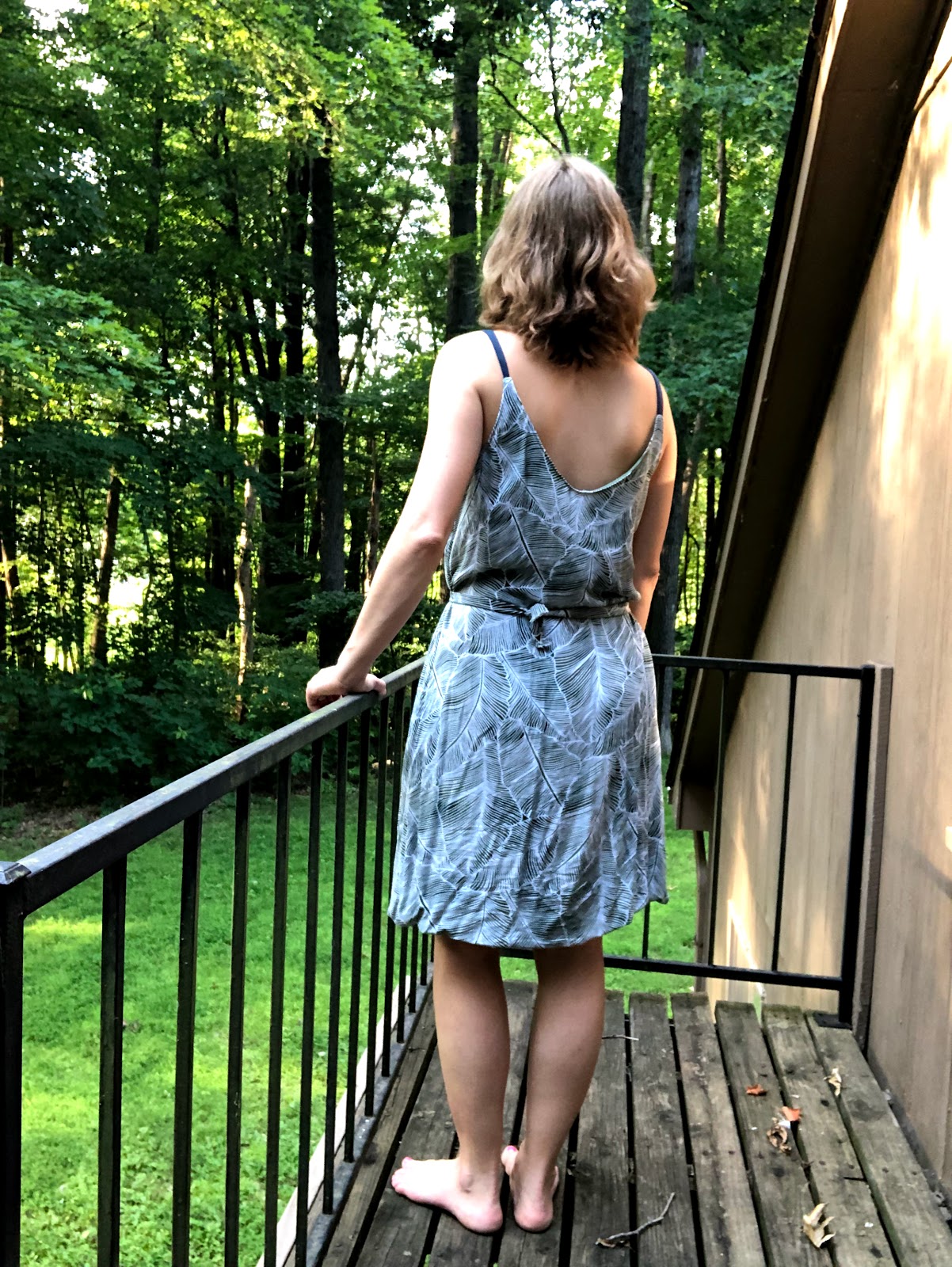 This garment took me forever to sew. The pattern came out right before we had to temporarily move into an AirBnb due to a tree fall on our home. I decided it would be a good project to take with me, so I started sewing it there. But then I needed my serger too. And then my dog died. And then a general depression took over my life and I stopped sewing.